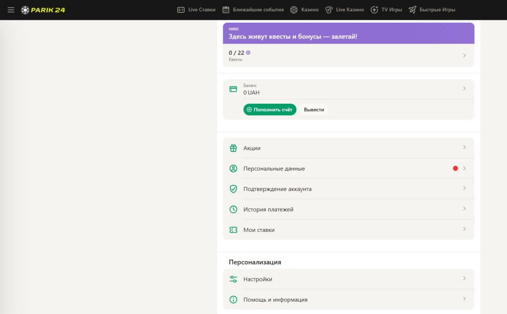 💡 Порада в огляді parik 24: Використовуйте реальні дані при реєстрації. Це дозволить уникнути проблем при верифікації та виведенні коштів. Невідповідність даних може призвести до блокування облікового запису та втрати коштів.
